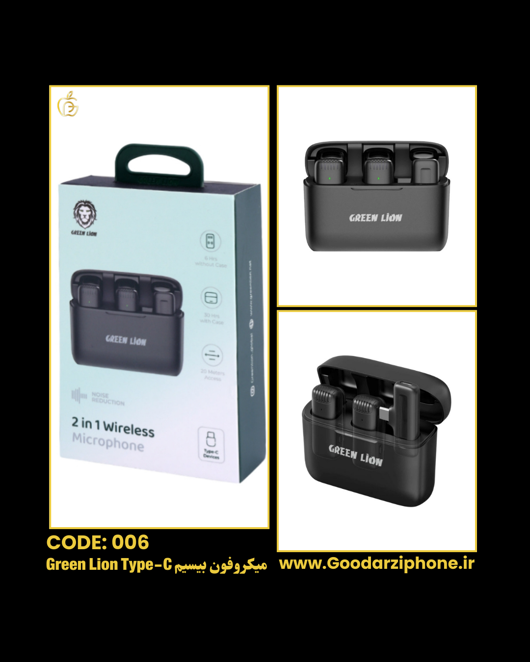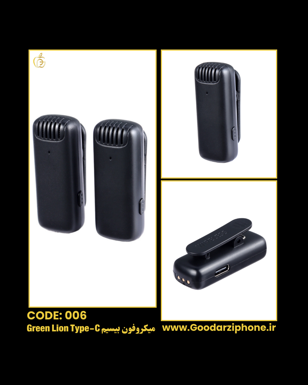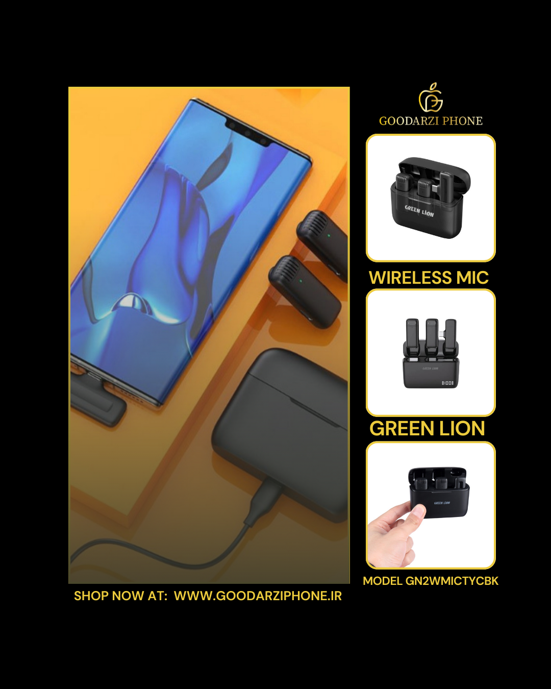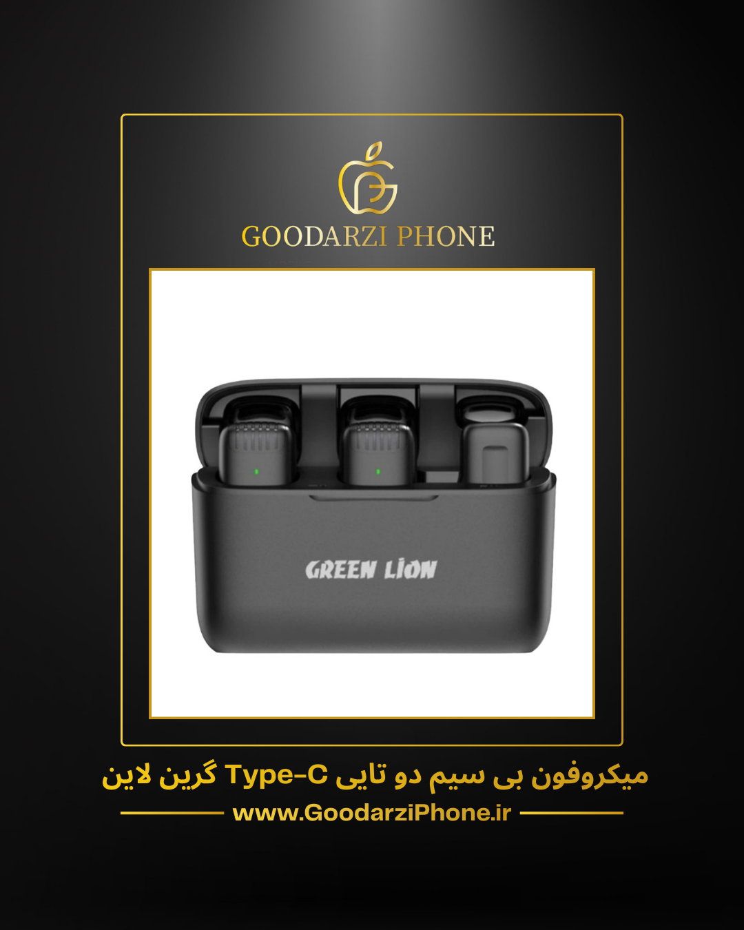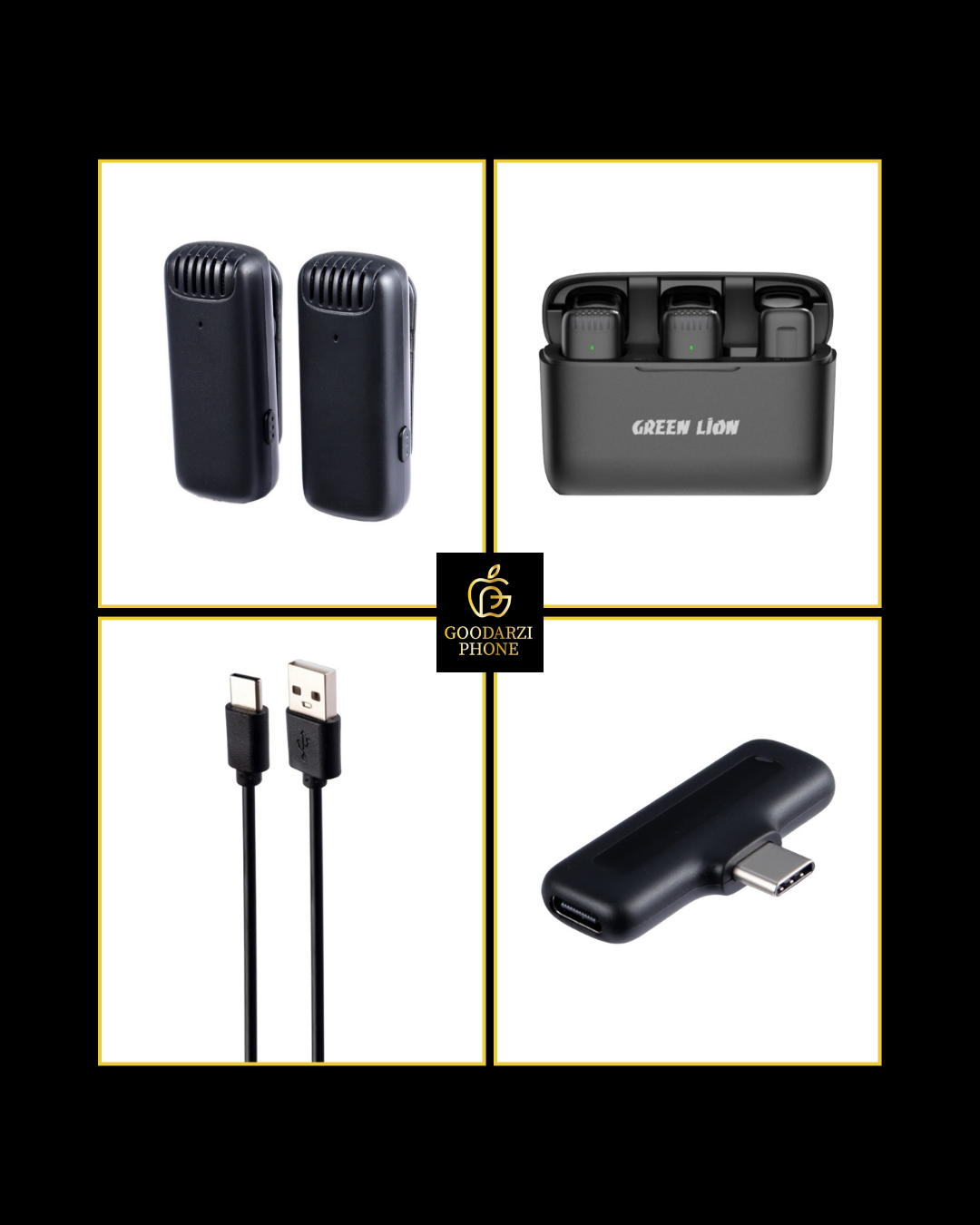 🎙️میکروفون بی سیم دوتایی تایپ سی گرین لاین مدل Green Lion GN2WMICTYCBK