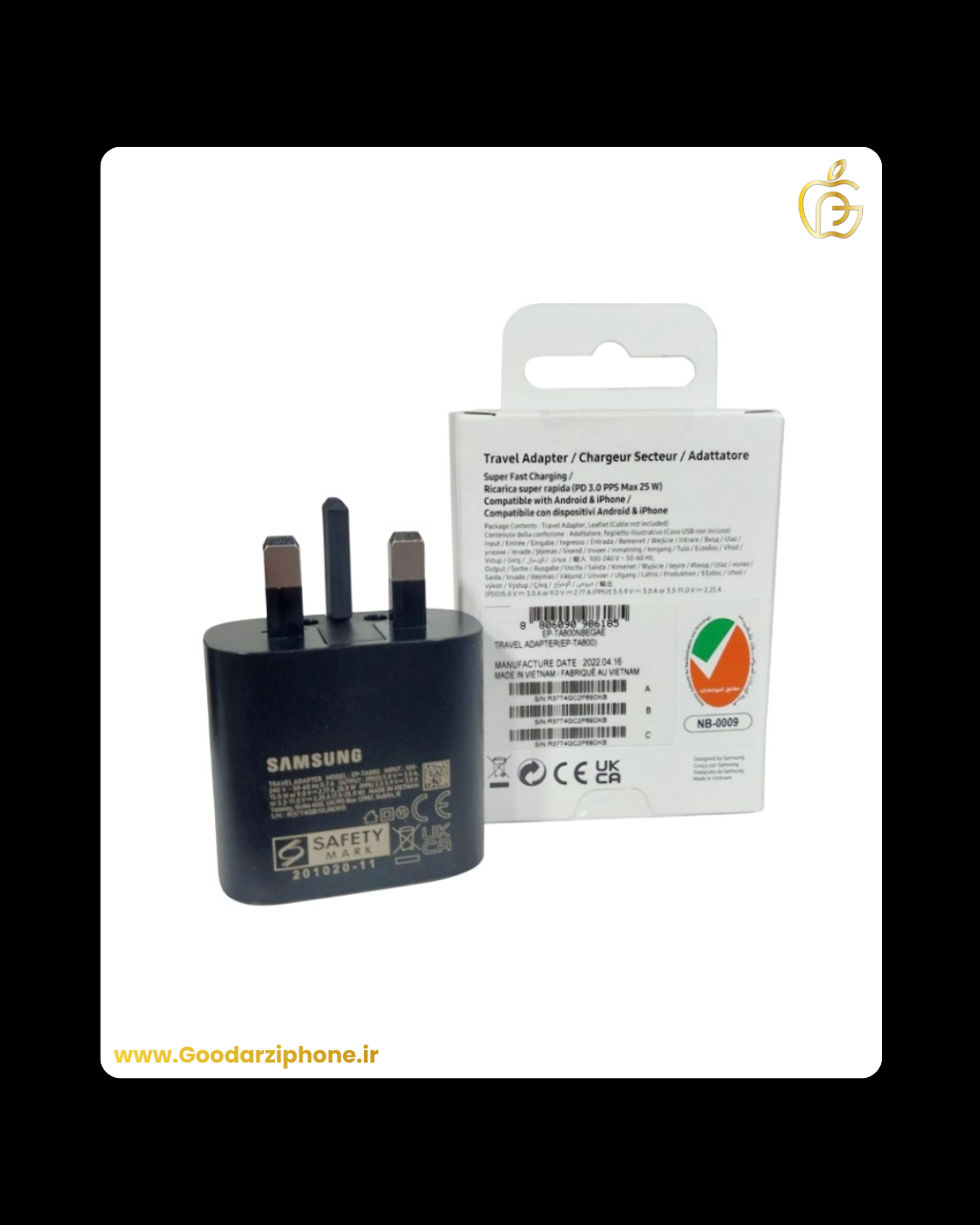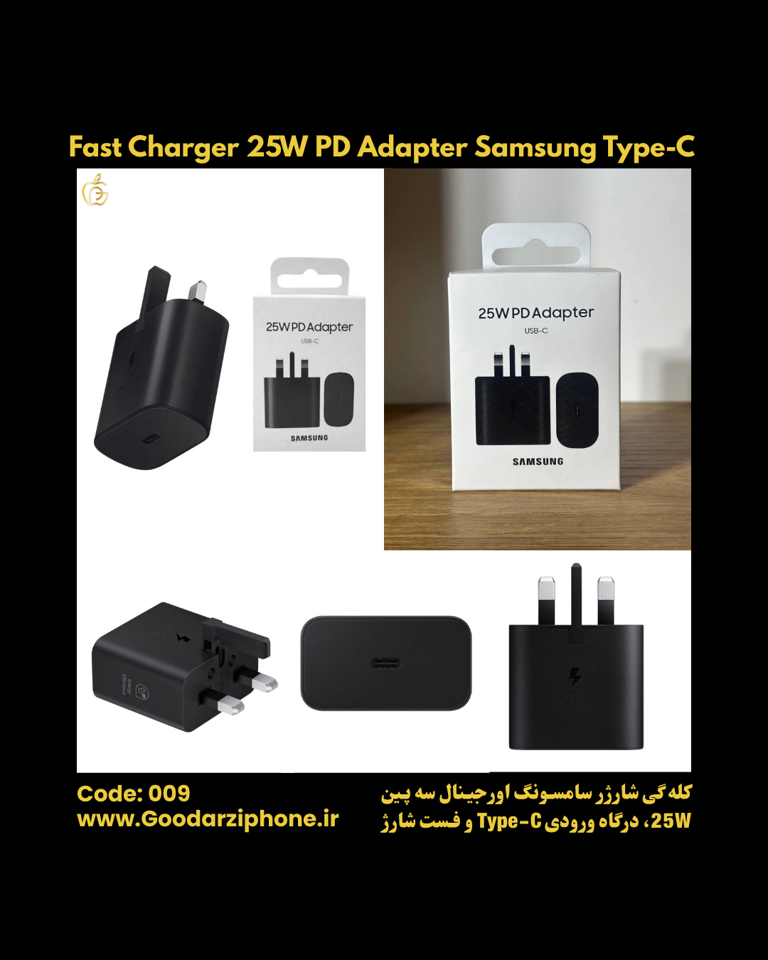 کله گی شارژر سامسونگ اورجینال سه پین 25 وات با کد 009