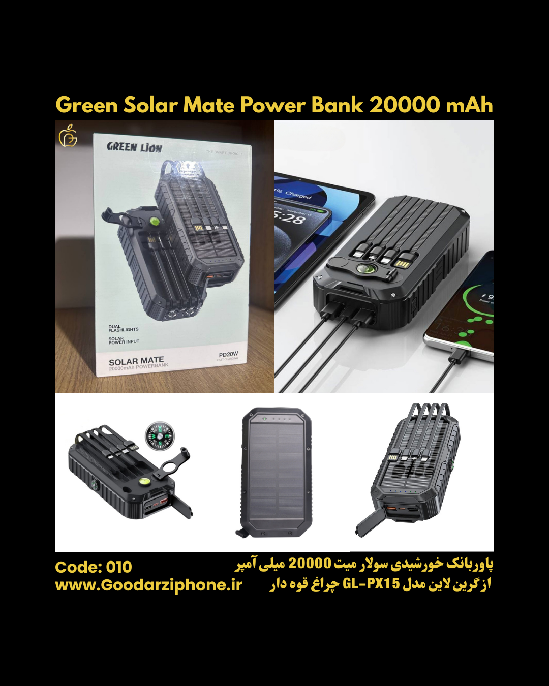 ⚡پاوربانک خورشیدی سولار میت 20000 گرین لاین مدل GL-PX15 کد 010