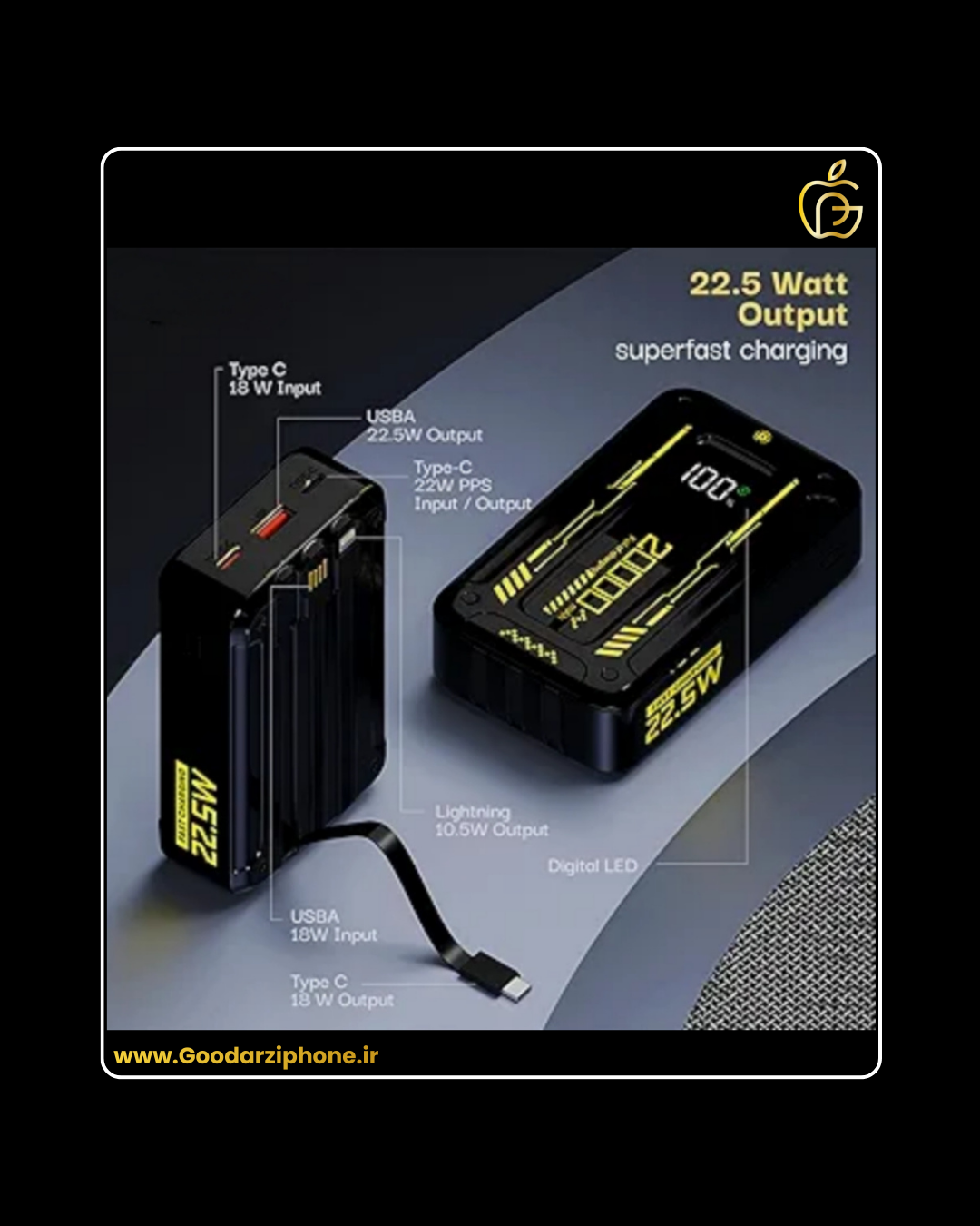 🔸توان خروجی: تا ۲۲.۵ وات با پشتیبانی از فناوری Power Delivery (PD)