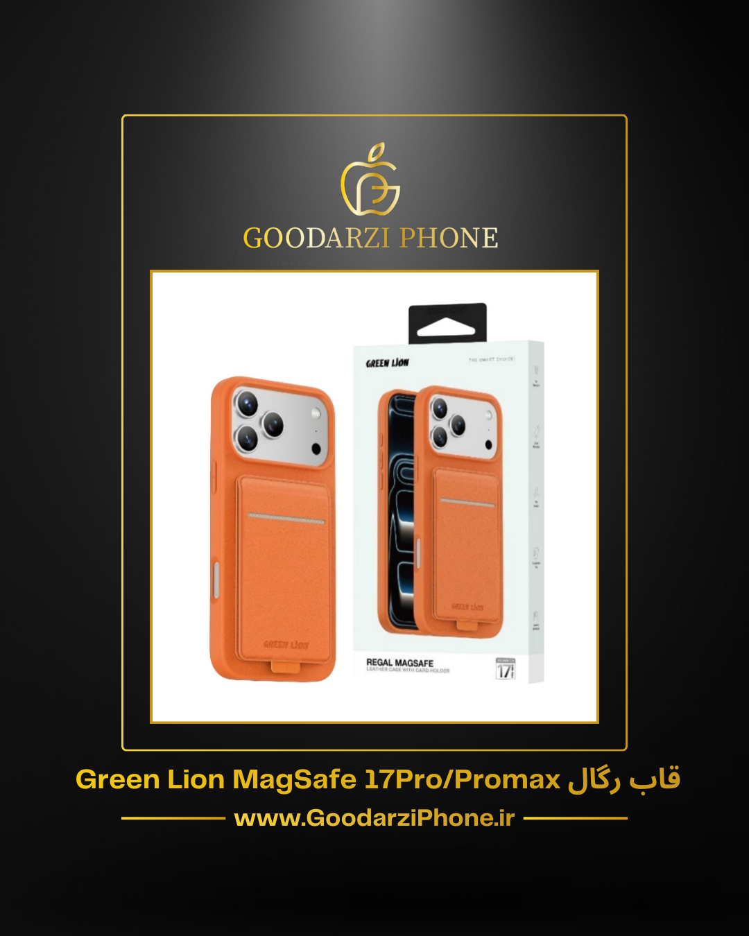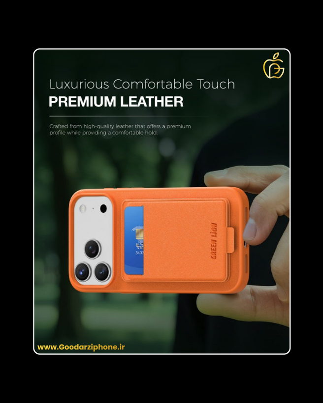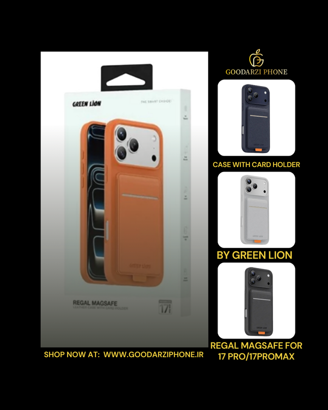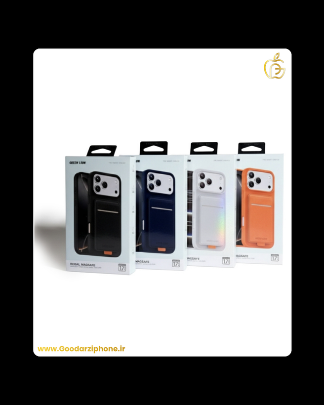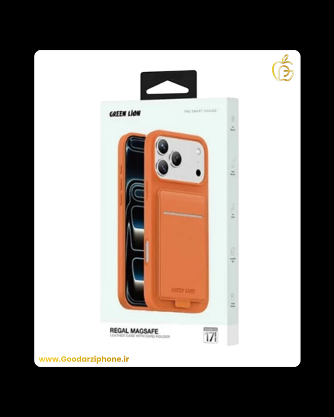 🛡️قاب چرمی رگال مگسیف با جای کارت آیفون ۱۷ پرو/پرو مکس گرین Green Lion Regal MagSafe Leather Case With Card Holder For IPhone 17 Pro/Pro Max