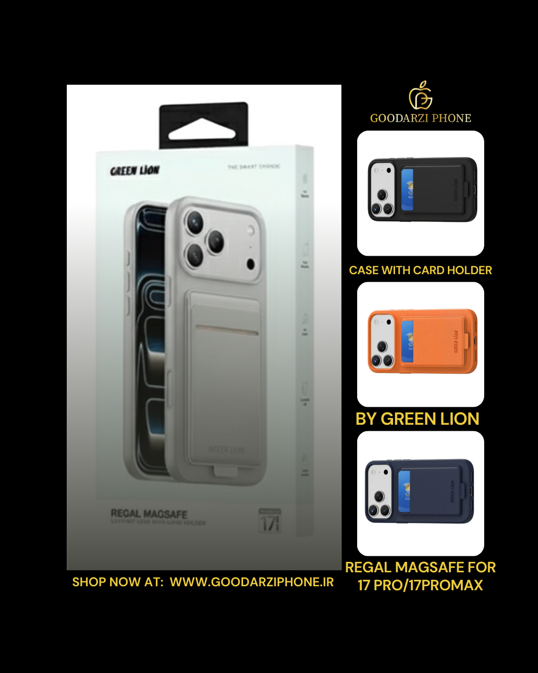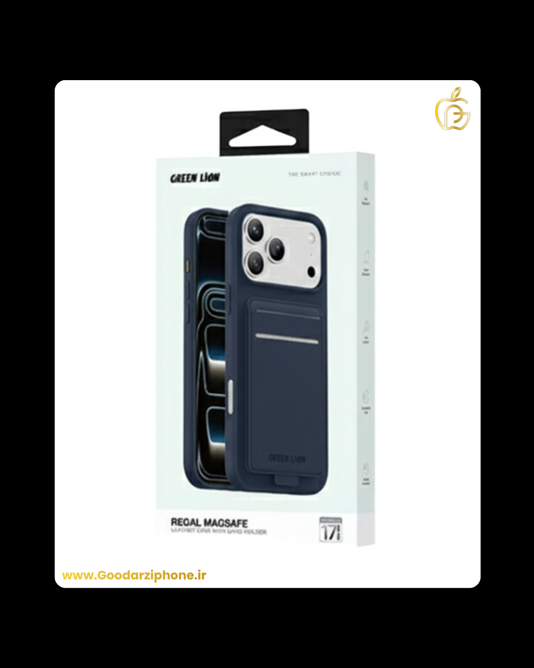 🛡️قاب چرمی رگال مگسیف با جای کارت آیفون ۱۷ پرو/پرو مکس گرین Green Lion Regal MagSafe Leather Case With Card Holder For IPhone 17 Pro/Pro Max