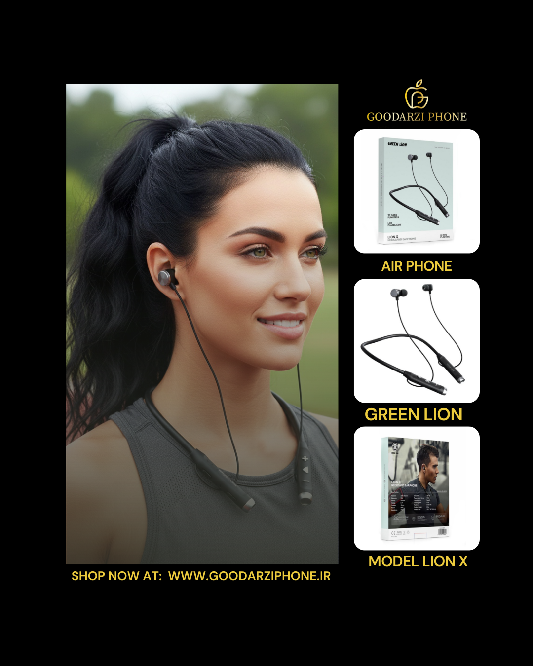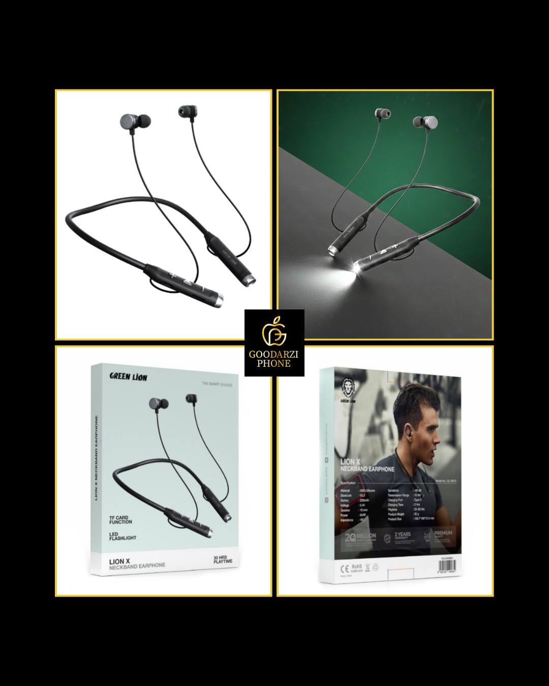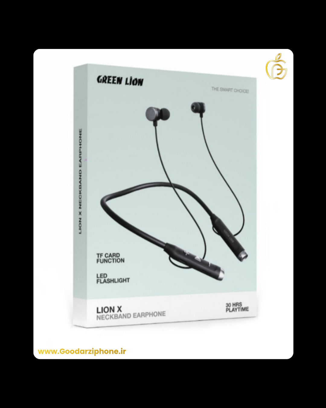 خرید هندزفری دورگردنی گرین لاین Lion X با ۳۰ ساعت شارژدهی، کیفیت صدای عالی و بلوتوث ۵.۳، رمخور، دارای چراغقوه LED و ضدآب، انتخابی ایدهآل برای ورزش، گیمینگ و مکالمه است.