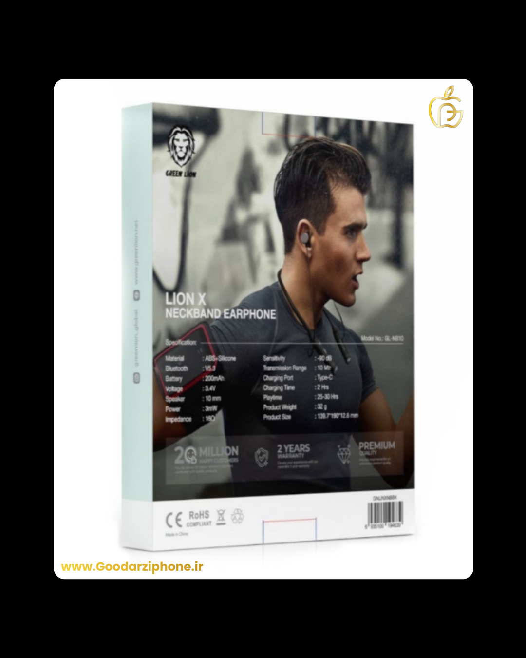 •هندزفری بلوتوثی دورگردنی گرین لاین مدل Green Lion Lion X Neckband Earphone GL-NB10 GNLINXNBBK