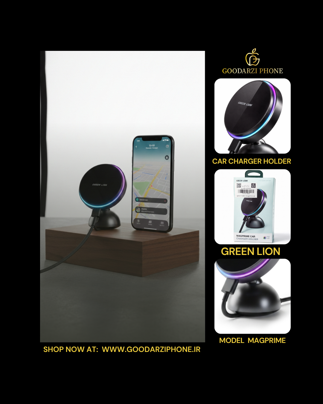 ⚡نگهدارنده و شارژر خودرو مگ پرایم گرین لاین Green Magprime Car Charger Holder