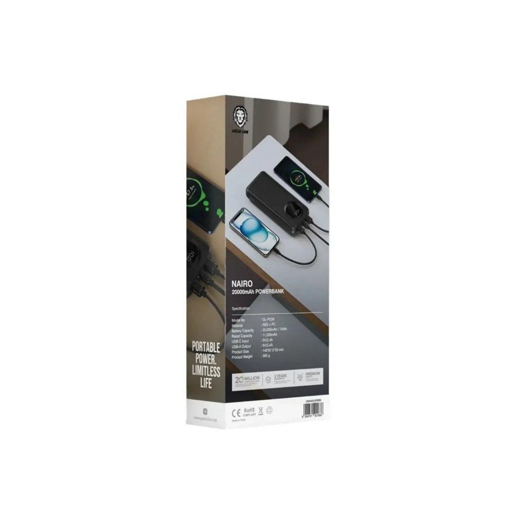 ✴️پاور بانک نایرو 20000 میلیآمپر 20 وات گرین Green Lion Nairo 20000mAh Power Bank PD 20W