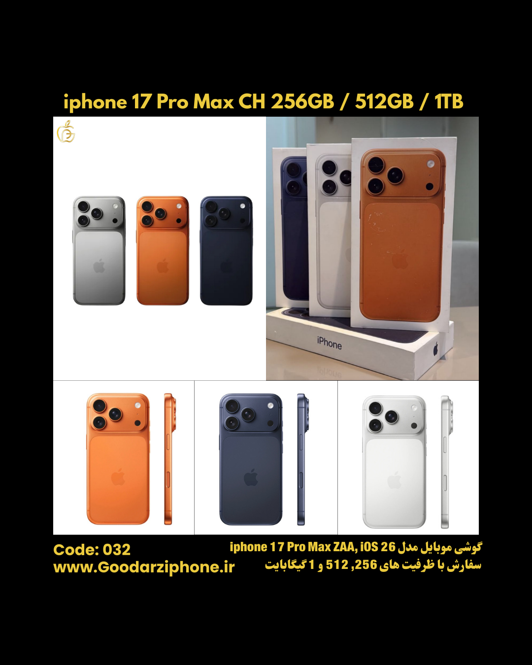 ✴️گوشی موبایل اپل مدل iphone 17 Pro Max پارت نامبر CH دو سیم کارت