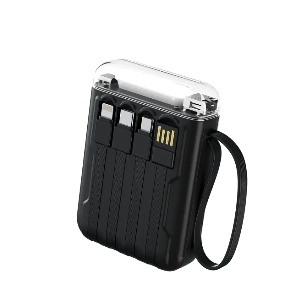 🔸دارای چهار کابل داخلی شامل USB-A، Type-C، Lightning و Micro USB برای شارژ انواع دستگاهها بدون نیاز به کابلهای اضافی