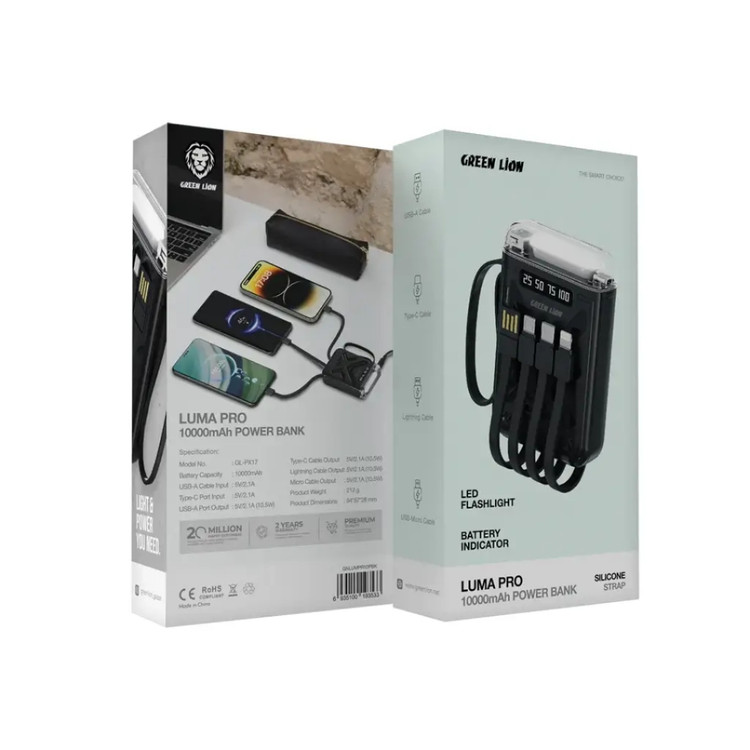 ▫️پاوربانک گرین لاین Luma Pro ظرفیت 10000 میلی آمپر دقیقاً برای کاربرانی طراحی شده که به دنبال تعادل بین قدرت، طراحی و قابلیت حمل هستند. نه یک پاوربانک حجیم و زمخت، نه یک مدل ضعیف نمایشی؛ بلکه یک ابزار روزمرهی قابل اعتماد. Green Lion در این مدل، تمرکز را روی تجربهی واقعی کاربر گذاشته است. شارژ سریع، وزن منطقی، طراحی مینیمال و سازگاری بالا با دستگاههای مختلف از خصوصیات بارز این محصول میباشد. این پاور بانک یک گزینهی متعادل، قابل اعتماد و خوشساخت برای استفاده روزمره است. نه اغراق میکند، نه کم میآورد. دقیقاً همان چیزی که یک کاربر آگاه از یک پاوربانک انتظار دارد. پاوربانک Luma pro، ابعاد بسیار جمع و جوری دارد و همراه خود 4 کابل مختلف دارد که شما را از داشتن کابل های مختلف بی نیاز می کند