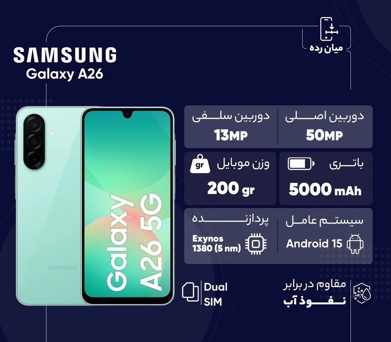 ✴️گوشی موبایل سامسونگ مدل Galaxy A26 دو سیم کارت ظرفیت 256 گیگابایت ویتنام